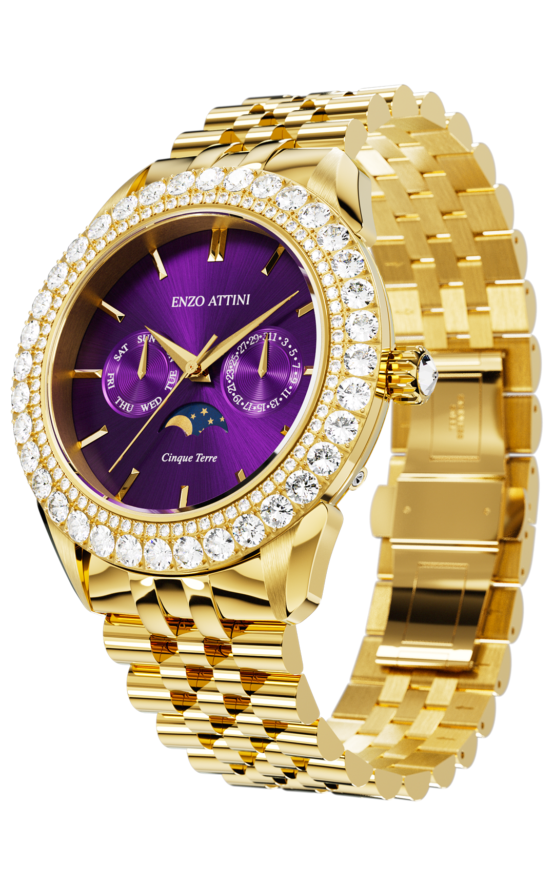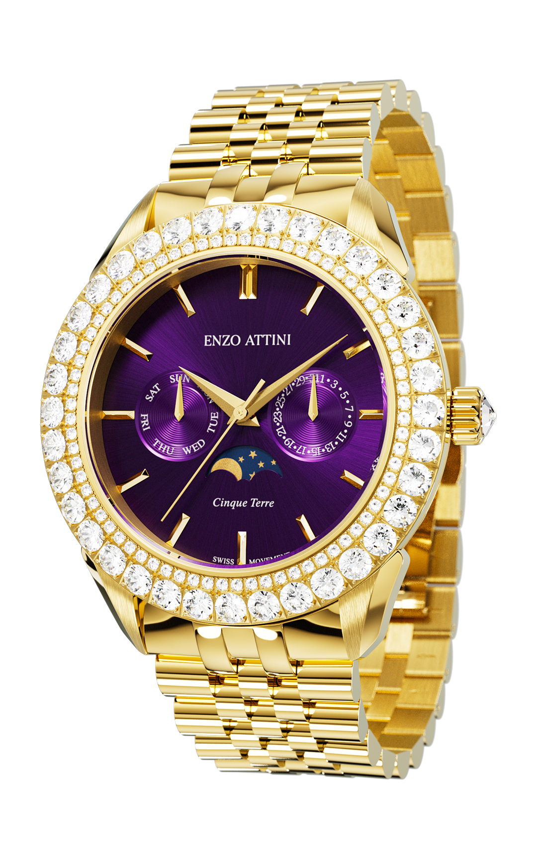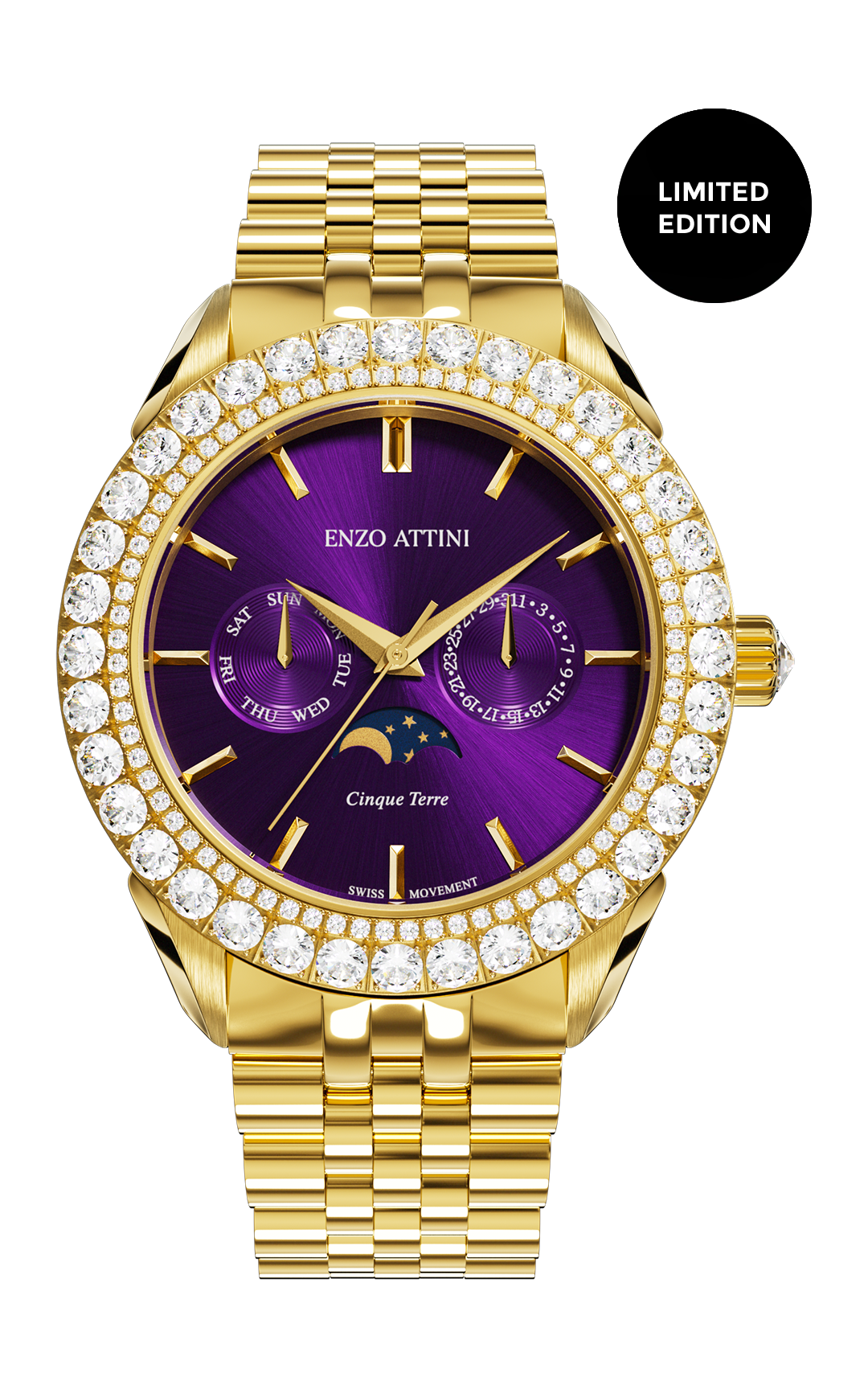 • FUNCTIONS: Hour, Minutes, Date, Month & Moonphase Function at 6 o’Clock
