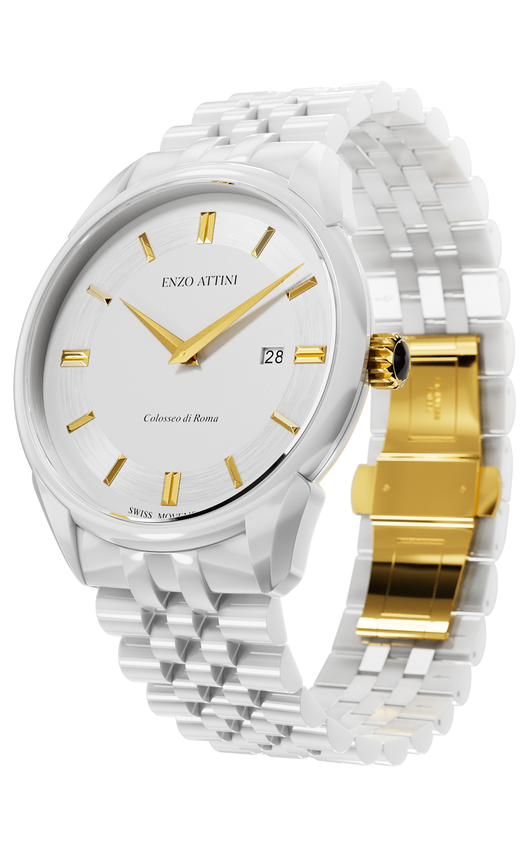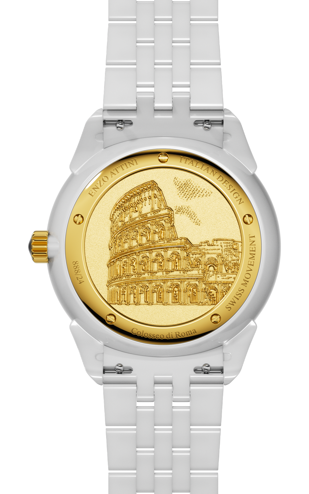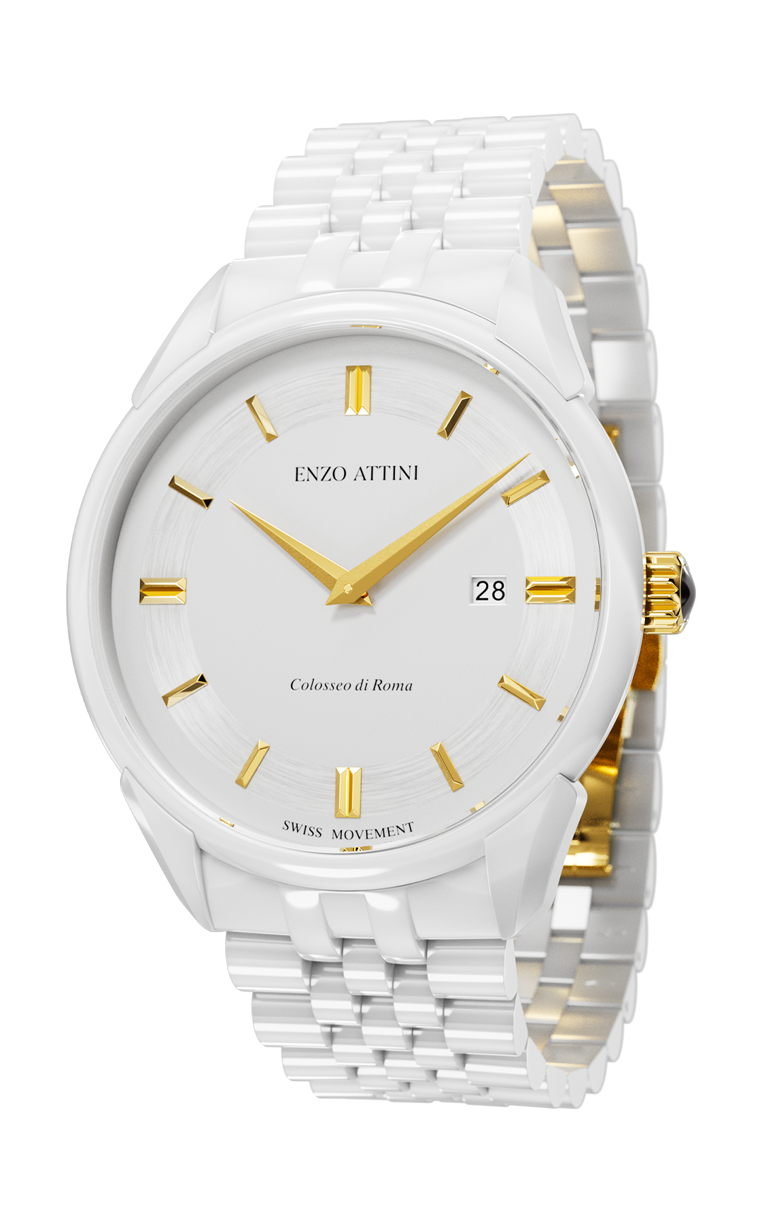 • CASE: White ceramic outer case, silver stainless steel inner case, size 40mmx8.9mm, stainless steel material 316L