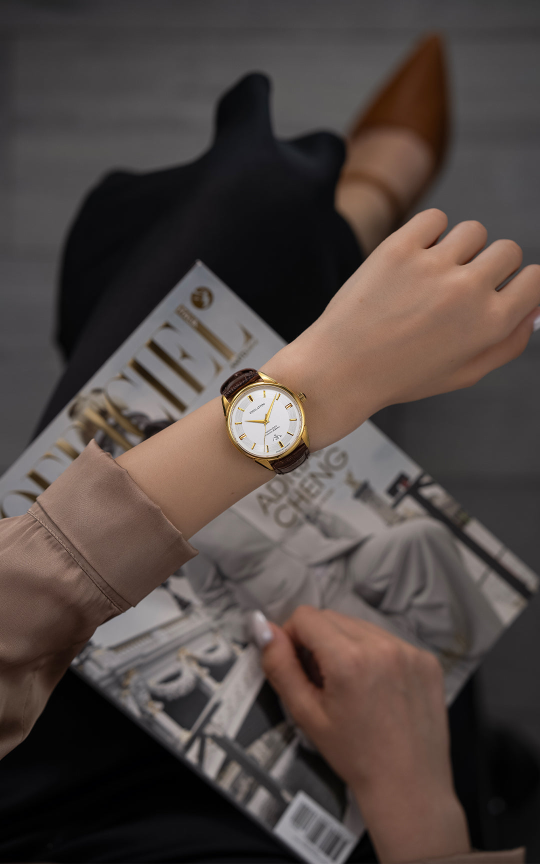 • STRAP: Italian Leather strap (croc pattern), Brown color, size 20mmx18mm, adjustable, fits best for 14-23cm wrists.