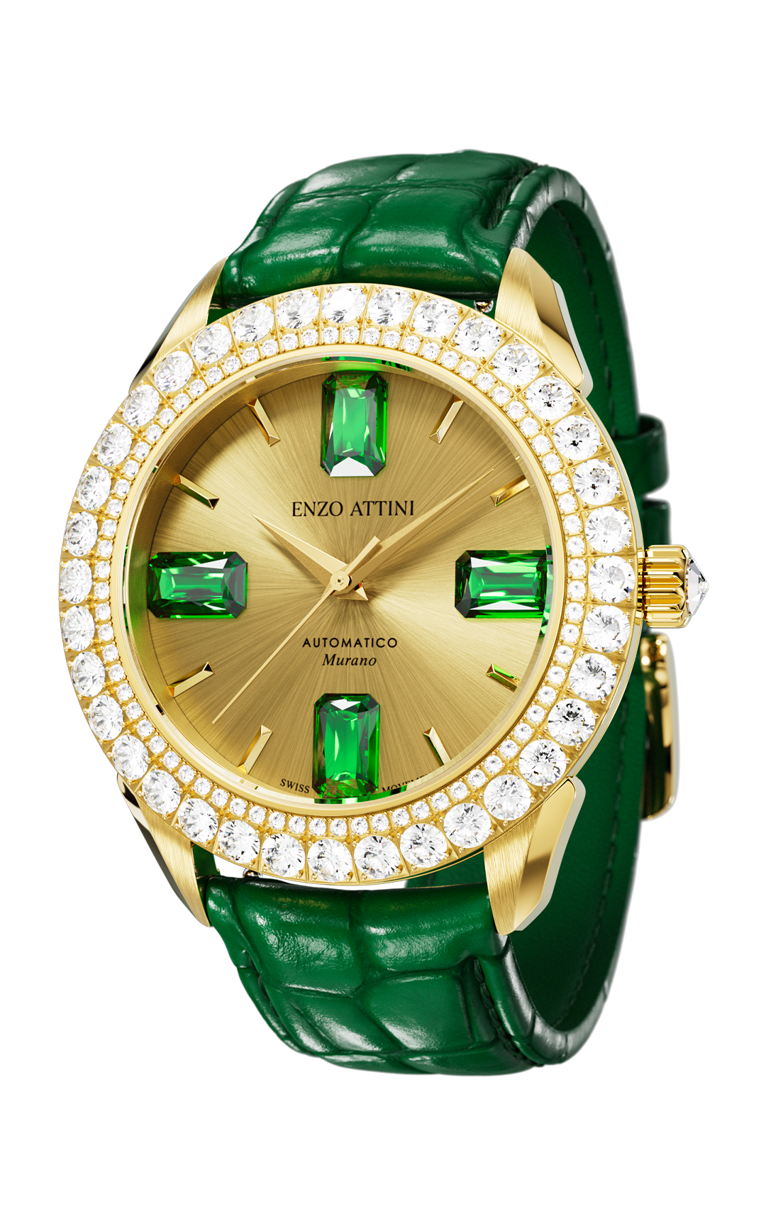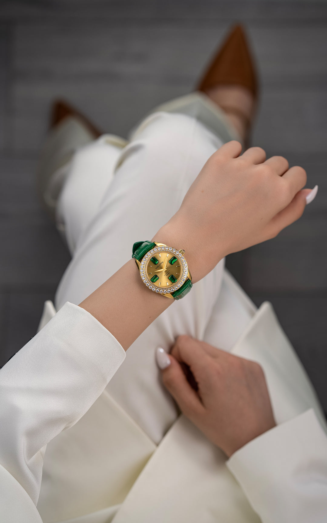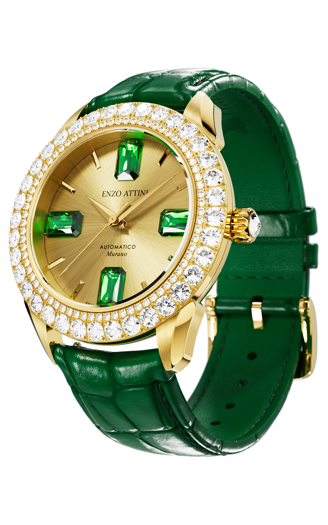 • STRAP: Italian Leather strap (croc pattern), Green color, size 20mmx18mm, adjustable, fits best for 14-23cm wrists.