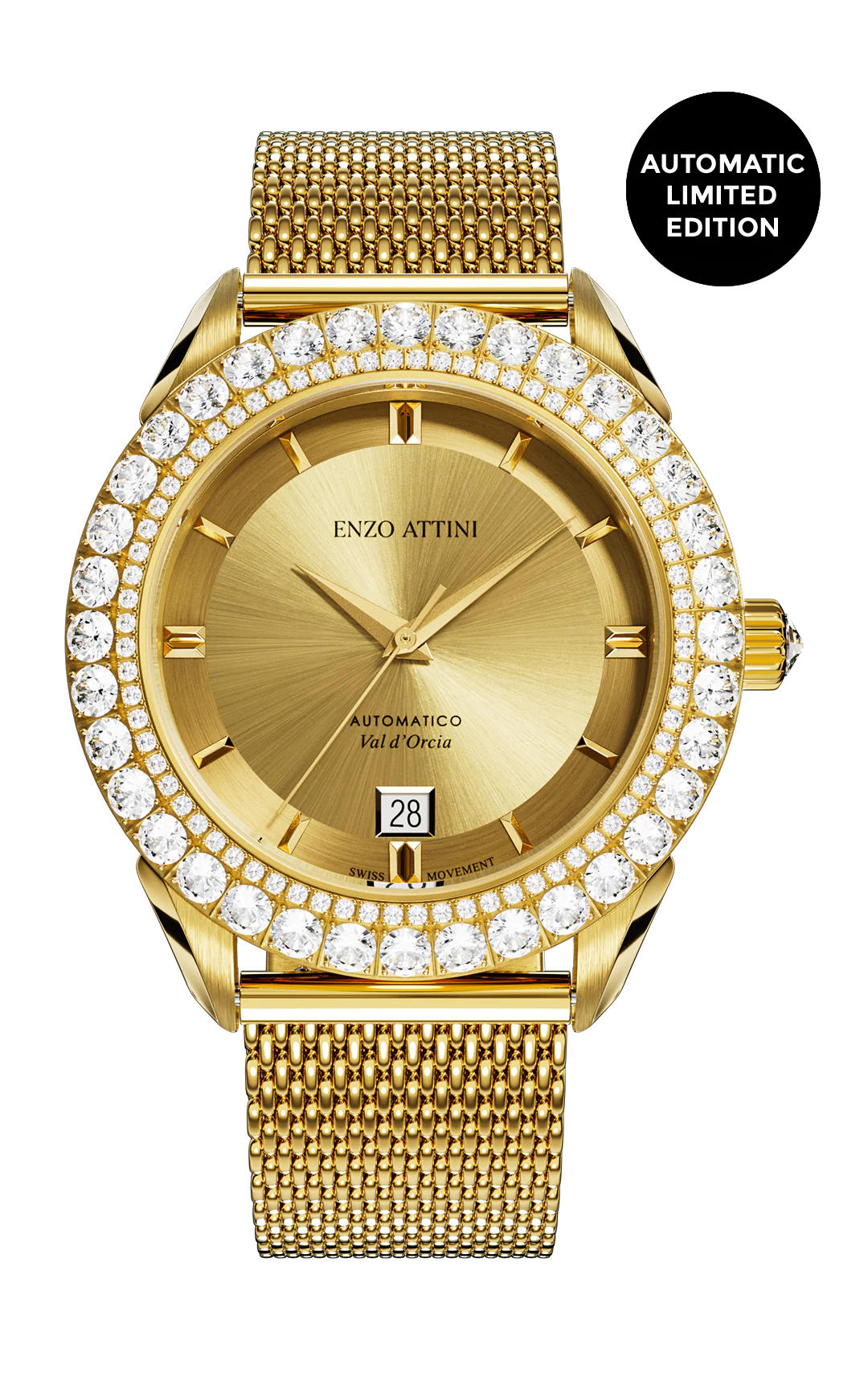 • MESH STRAP: Gold Color (18K Gold Plated), Stainless steel 316L, one size fits all.