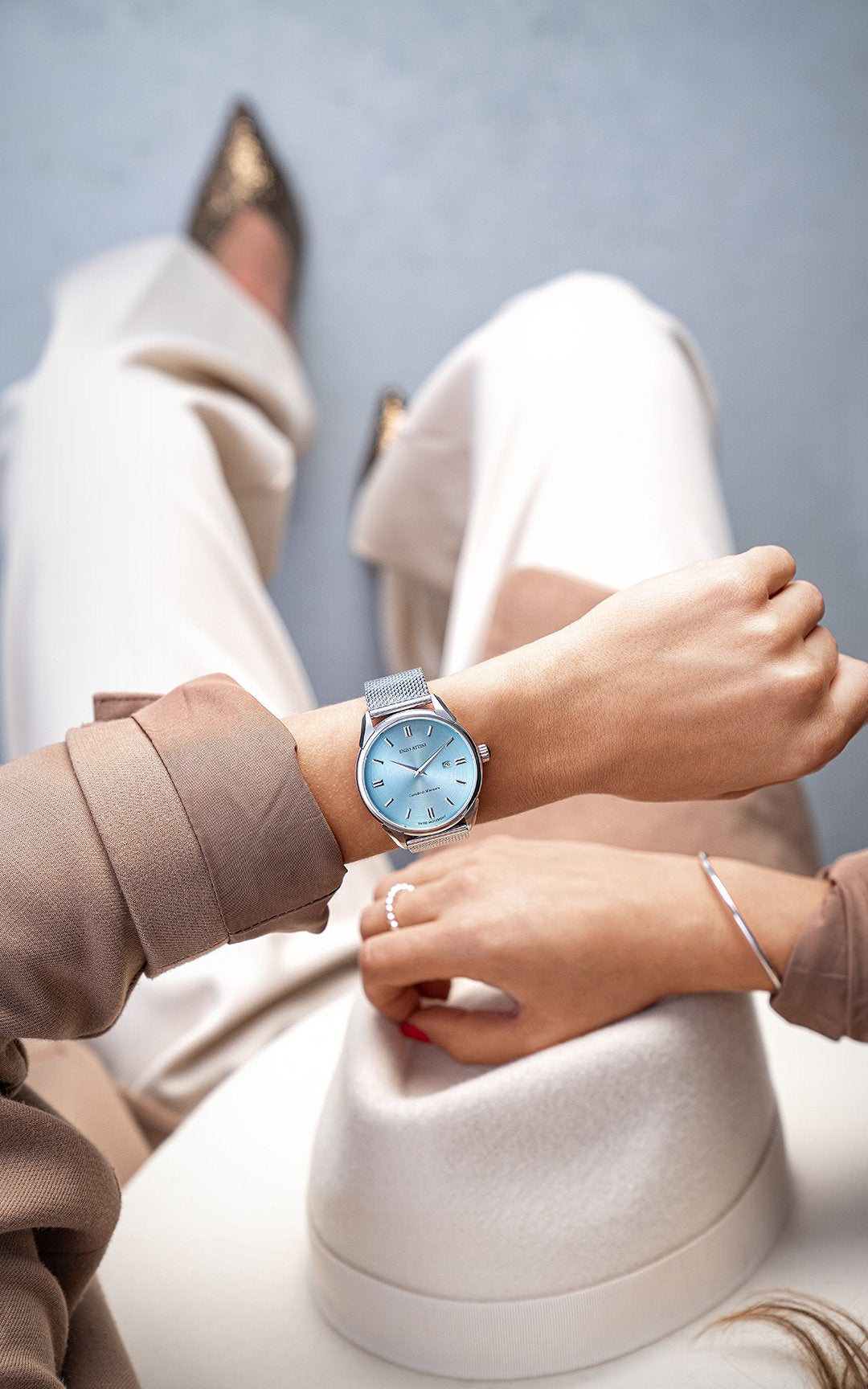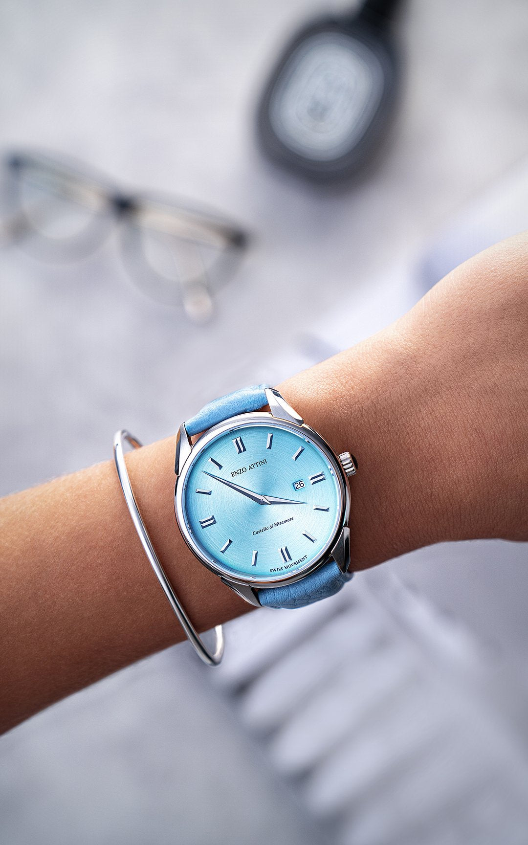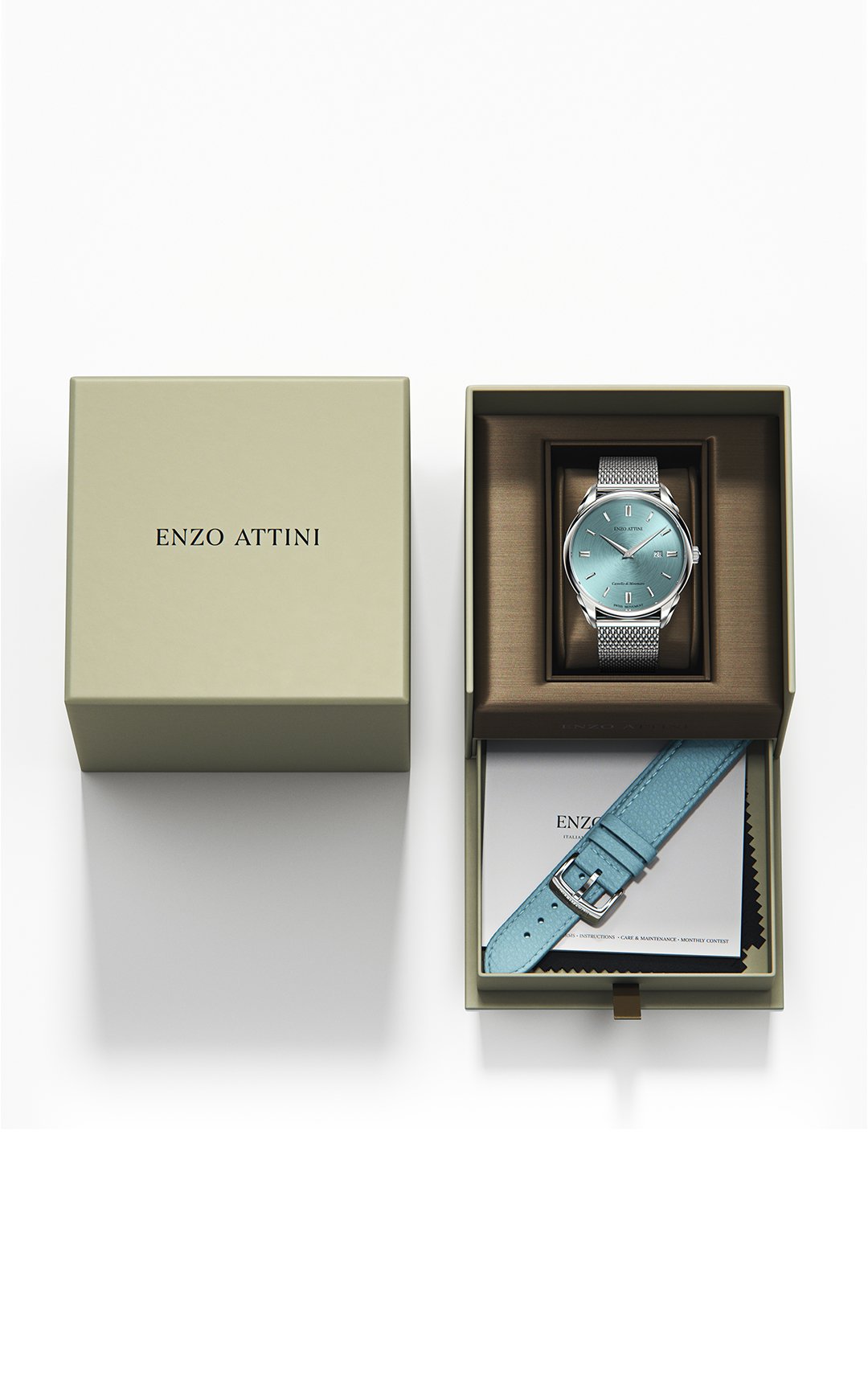• STRAPS: Mesh Strap, Silver Color, Stainless steel 316L, one size fits all. Italian Leather strap, tiffany color, size 20mmx18mm, adjustable, fits best for 14-23cm wrists.