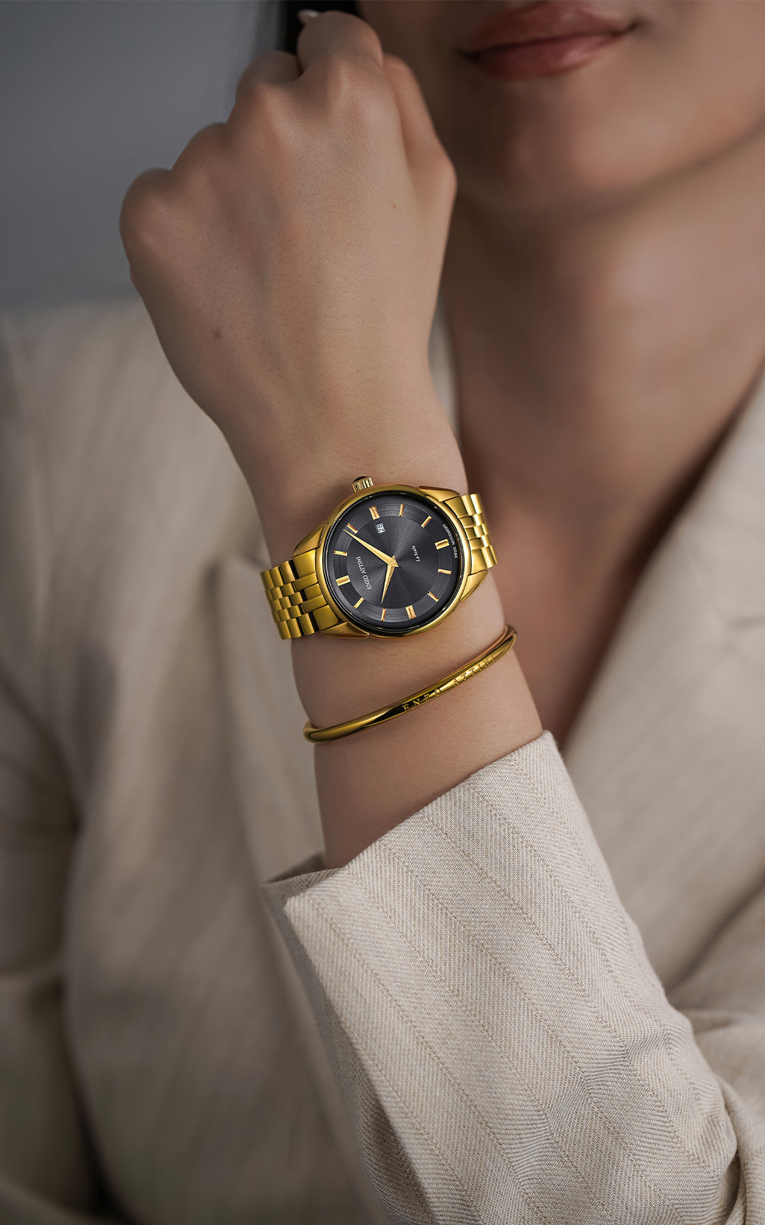 • CASE: Gold color (18K Gold Plated), size 40mm x 8.9mm, stainless steel material 316L