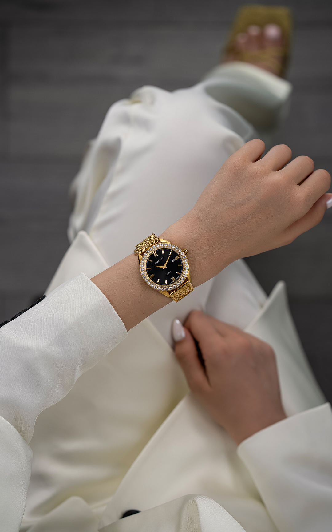 • MESH STRAP: Gold Color (18K Gold Plated), Stainless steel 316L, one size fits all.