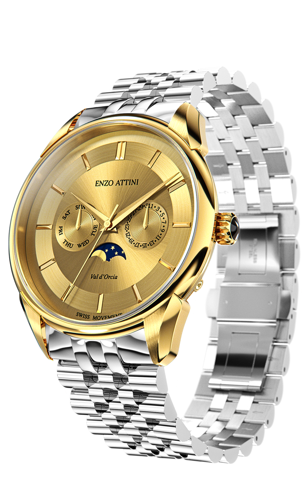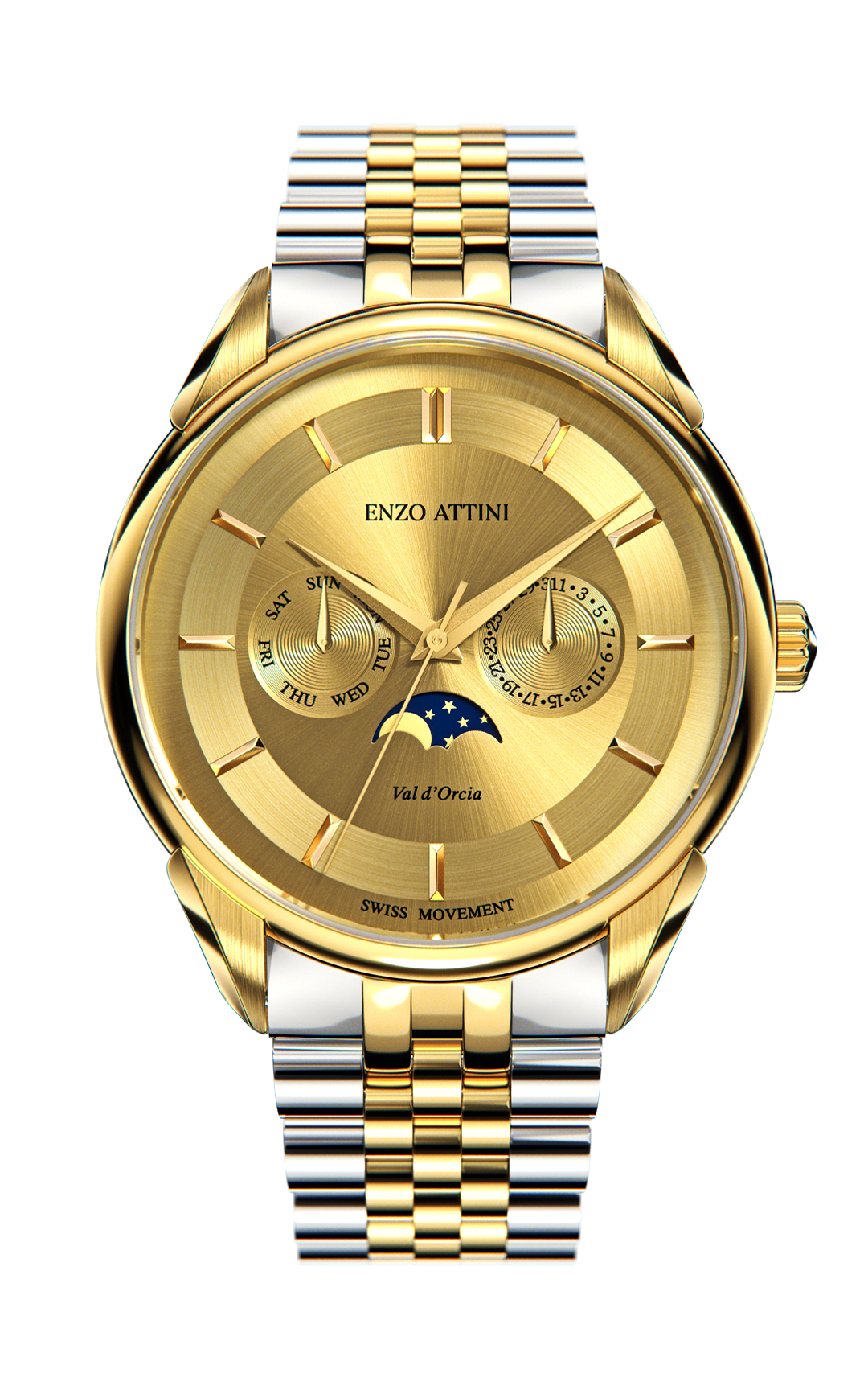 • FUNCTIONS : Hour, Minutes, Date, Month & Moonphase Function at 6 o’Clock