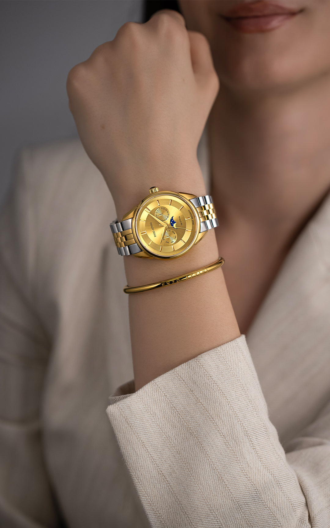 • CASE : Gold color (18K Gold Plated), size 40mm x 8.9mm, stainless steel material 316L