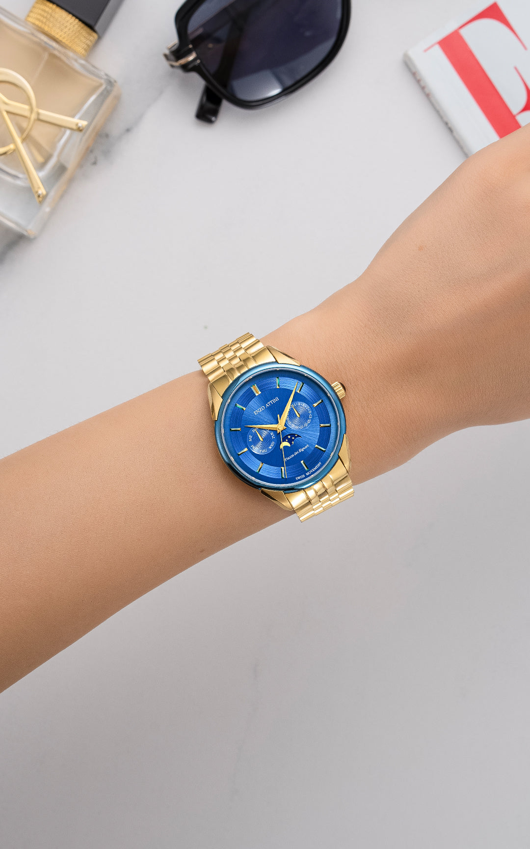 • CASE: Blue & Gold color (18K Gold Plated), size 40mmx8.9mm, stainless steel material 316L