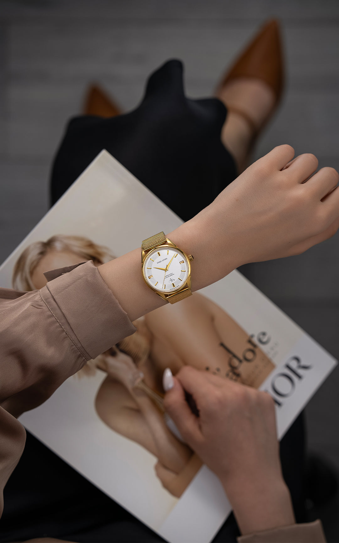 • MESH STRAP: Gold Color (18K Gold Plated), Stainless steel 316L, one size fits all.