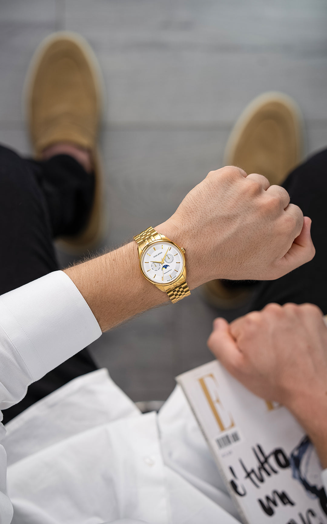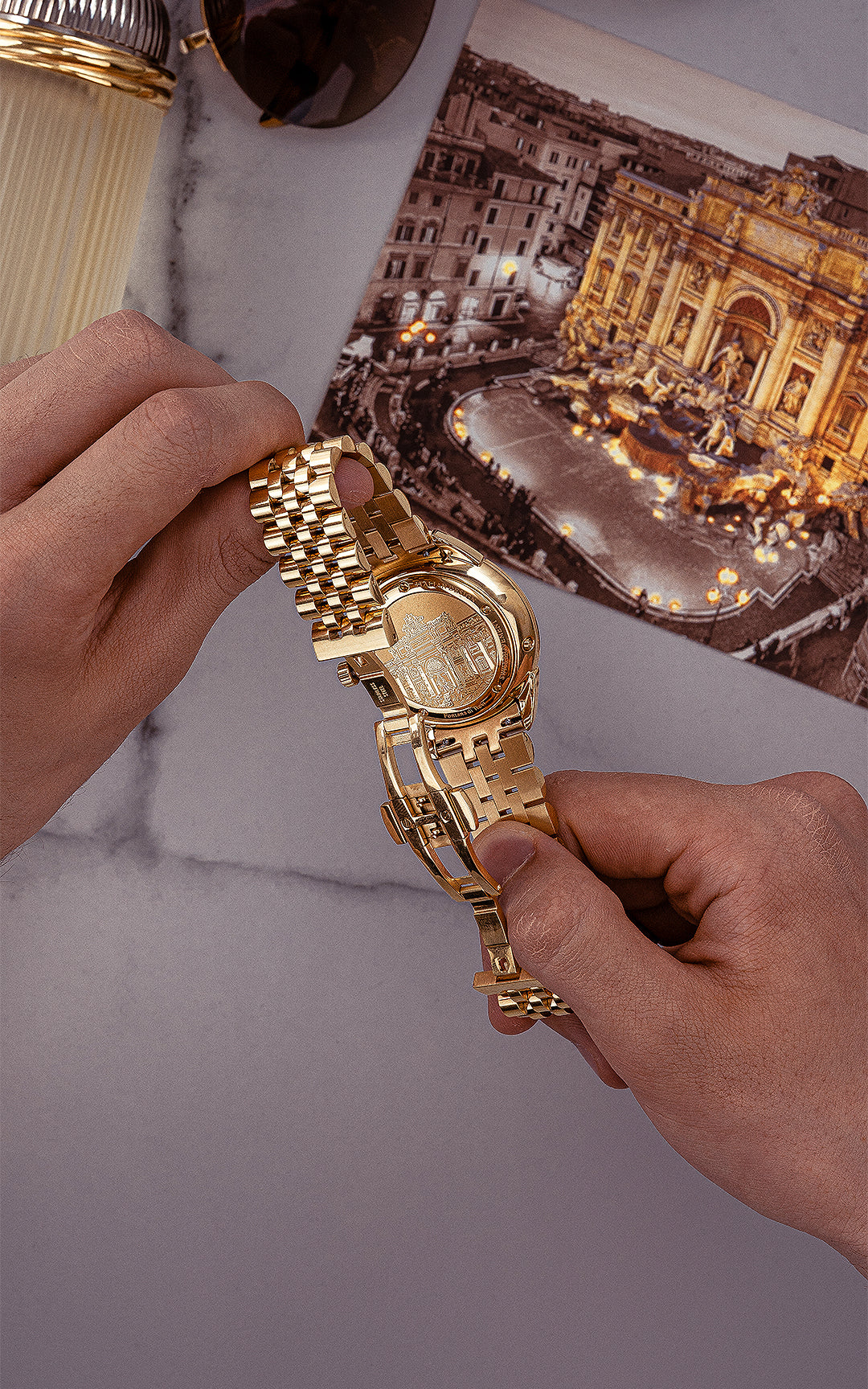 • CASE: Gold color (18K Gold Plated), size 40mmx8.9mm, stainless steel material 316L