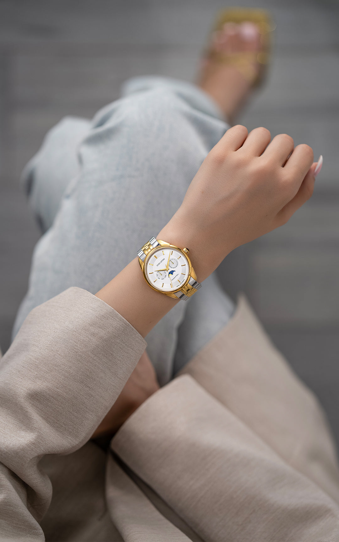 • FUNCTIONS: Hour, Minutes, Date, Month & Moonphase Function at 6 o’Clock• WATER RESISTANCE: up to 5 ATM