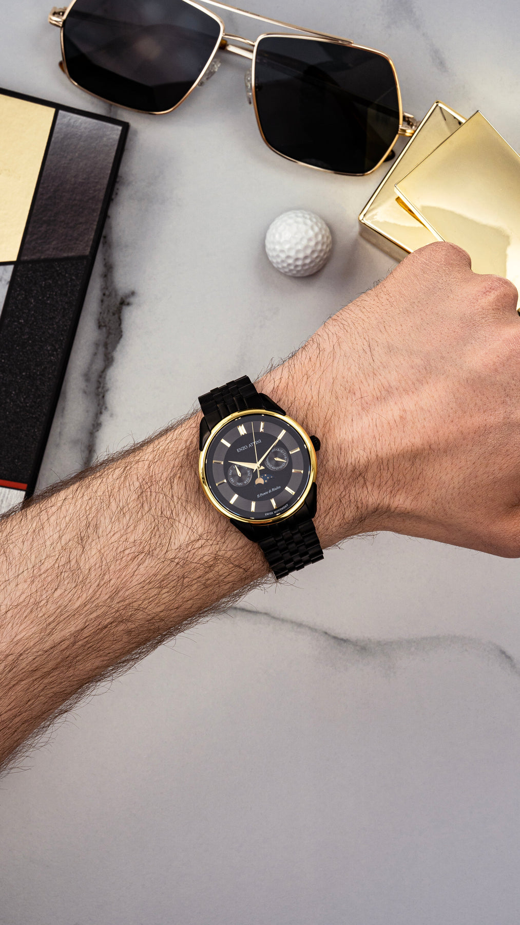• CASE: Gold & Black color (18k plated), size 40mmx8.9mm, stainless steel material 316L