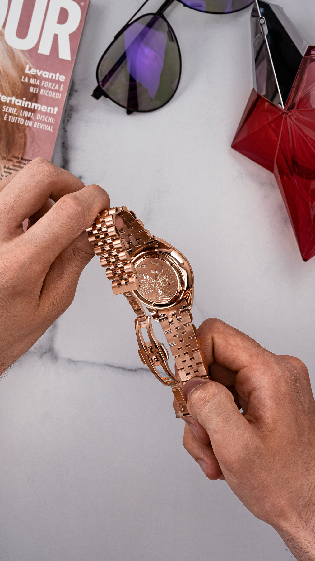 • CASE: Rose Gold color (18K Gold Plated), size 40mmx8.9mm, stainless steel material 316L